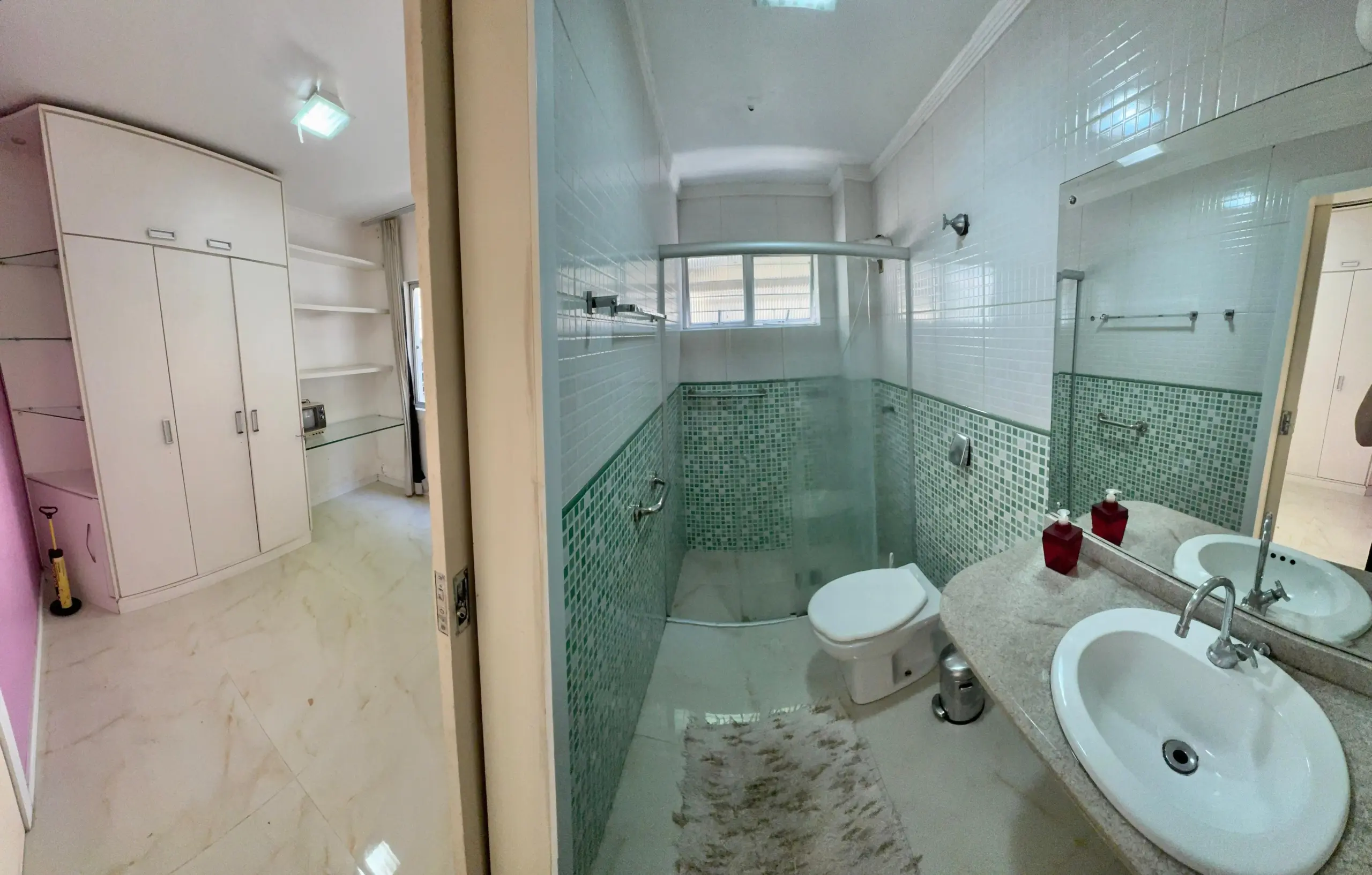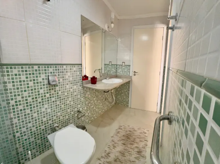 O imóvel possui 1 suíte, 1 banheiro social, área total de 99 m².