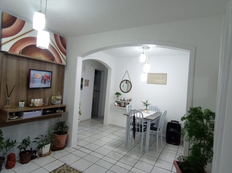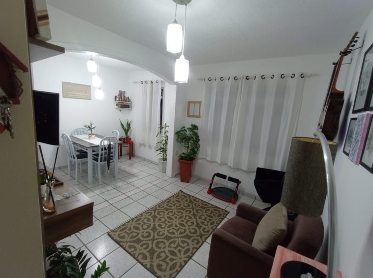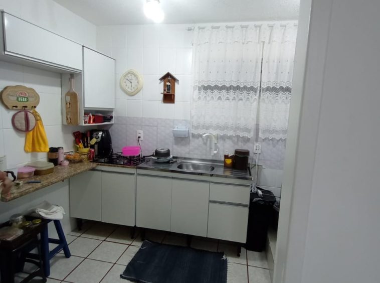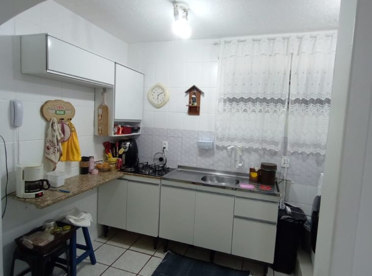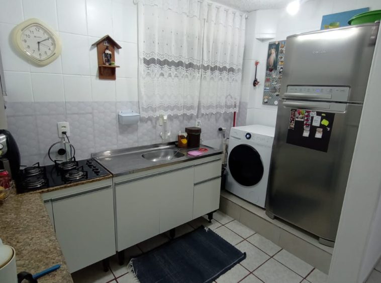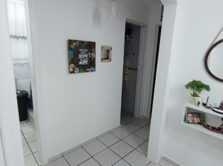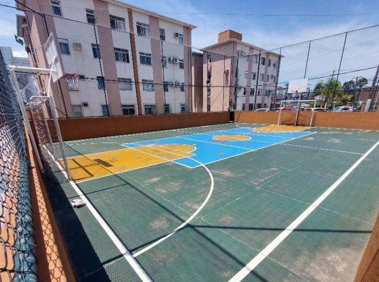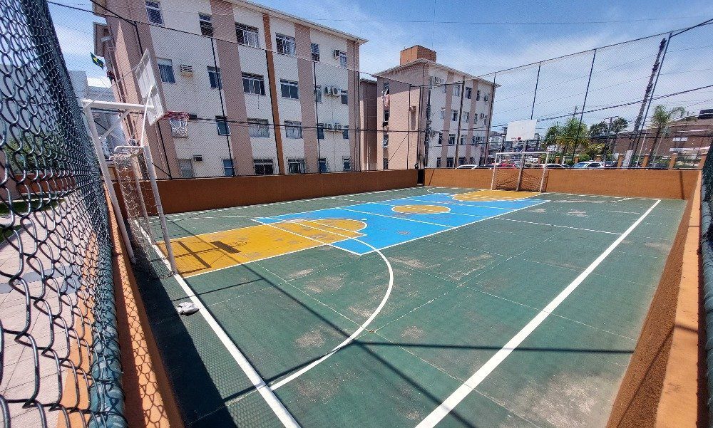 Condomínio com interfone, portaria 24h, playground, quadra poliesportiva e salão de festas.