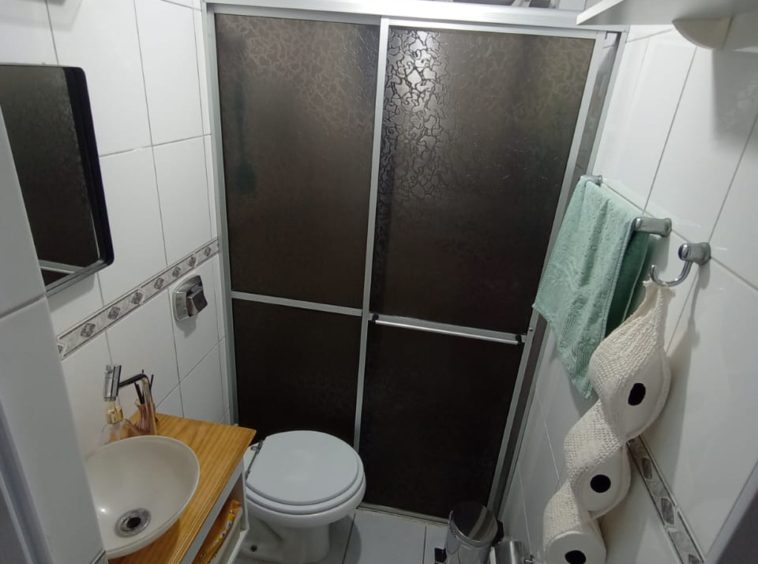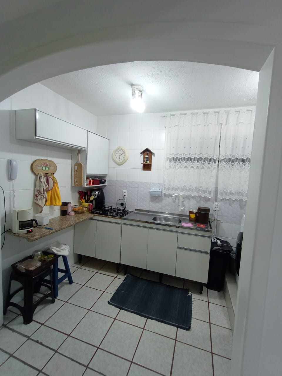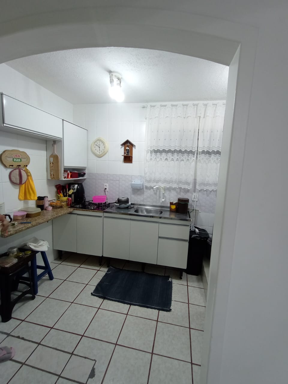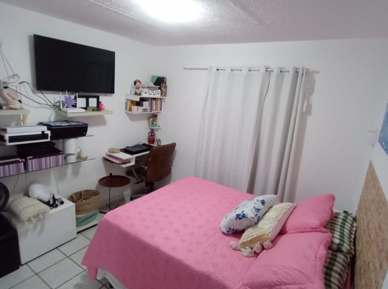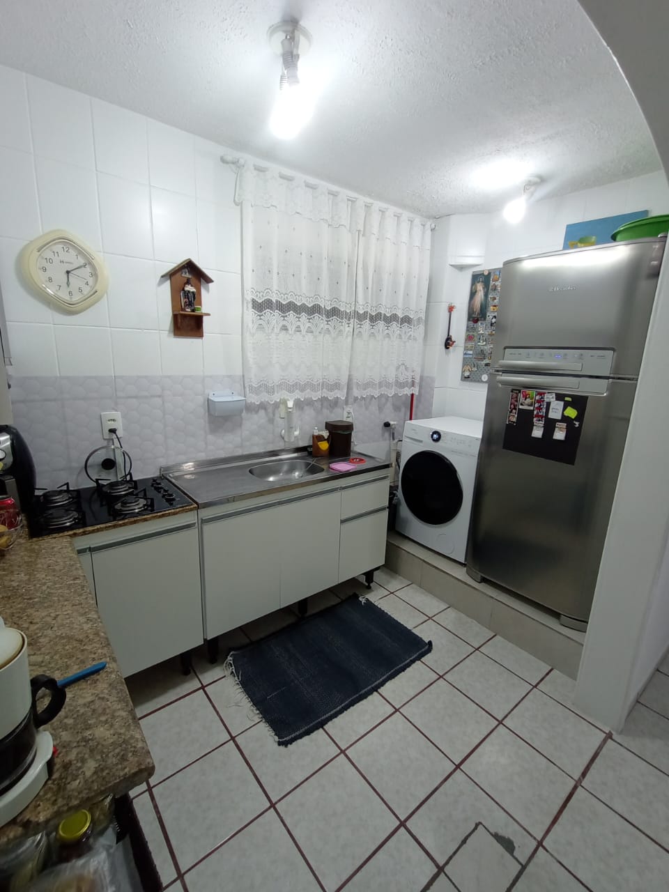 Condomínio com interfone, portaria 24h, playground, quadra poliesportiva e salão de festas.