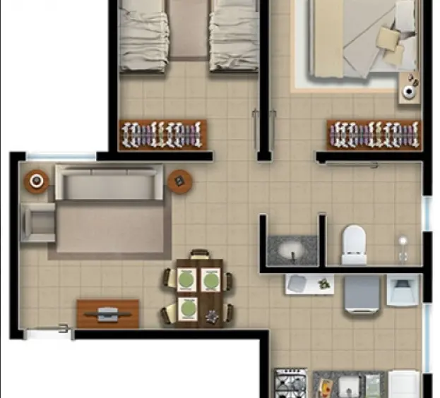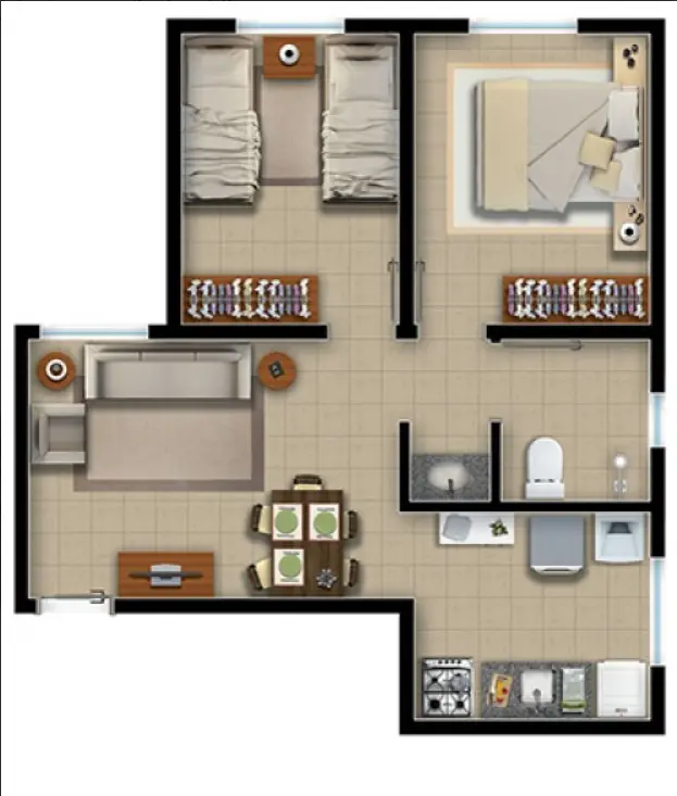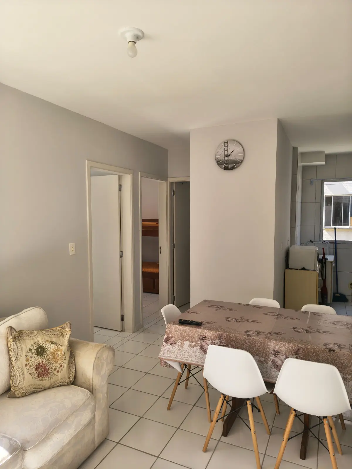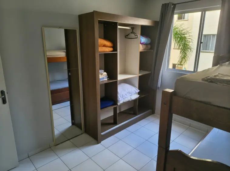 Aconchegante apartamento com 2 dormitórios, 1 banheiro social e sala com 2 ambientes integrada à cozinha e à área de serviço. Possui piso cerâmico e 1 vaga de garagem rotativa descoberta. Localizado em bairro familiar e tranquilo para morar.