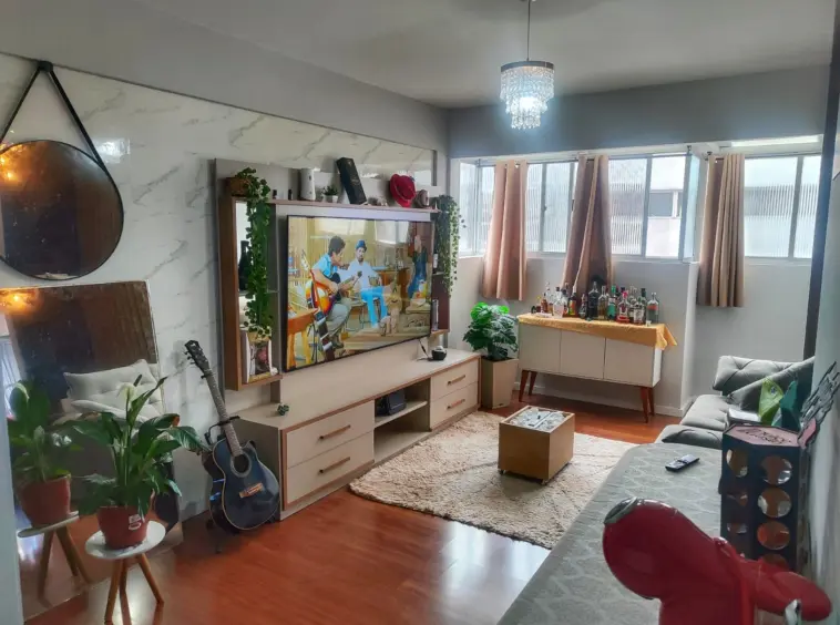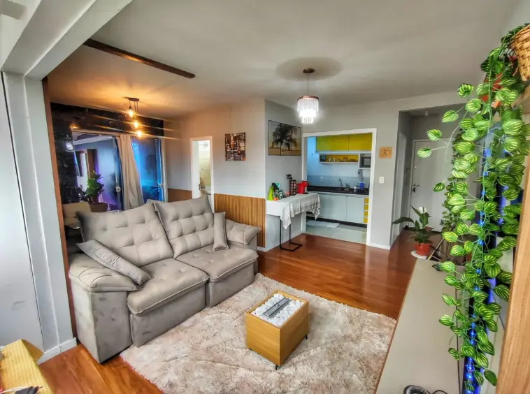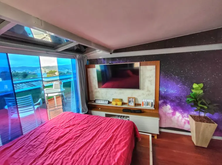 Bela cobertura de 2 dormitórios revertido em 1 quarto com closet no bairro Coqueiros, bela vista do terraço, móveis sob medida e sendo em excelente localização.